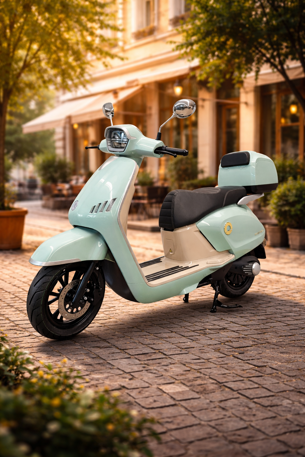 Der Elektroroller „Future“ vereint zeitgemäßes Design mit fortschrittlicher Technologie. Sein stilvolles Erscheinungsbild versprüht mediterranes Flair – und das komplett ohne Emissionen.