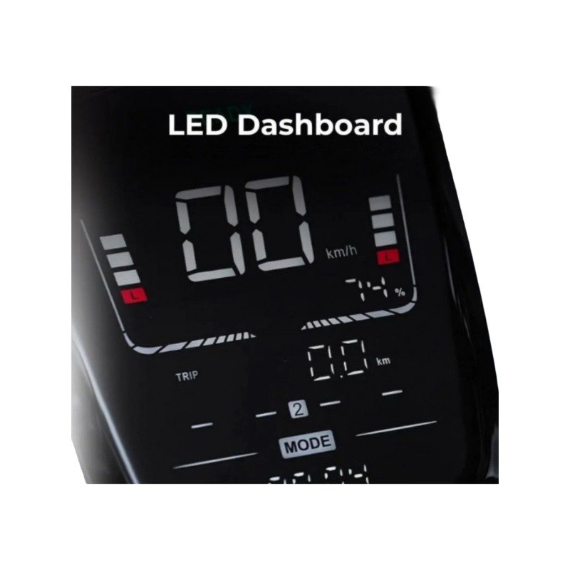 - Anzeigeinstrumente: Batterieladezustandsanzeige, Tachometer mit KM-Zähler, Lichttechnik: Standlicht (LED), Abblendlicht (LED), Fernlicht vorne und Rücklicht (LED)